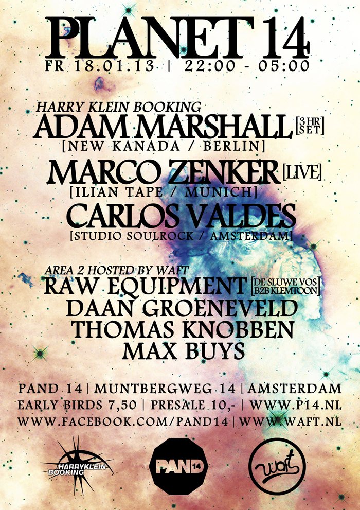 Adam Marshall, Marco Zenker (live), Carlos Valdes, Raw Equipment, Daan Groeneveld, Max Buys, Thomas Knobben