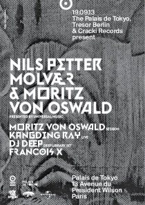 Date / Thursday, 19 September 2013 Time / 19:00 – 02:00 Venue / Palais de Tokyo / 13 Avenue du Président Wilson, Paris 16 Cost / €12 presales only Line-up / Nils Petter Molvaer & Moritz von Oswald present ‘1/1’ Moritz von Oswald