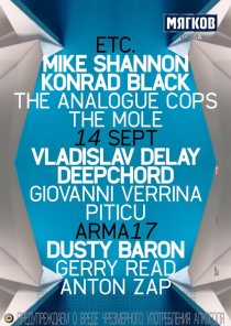 Date / Saturday, 14 September – Sunday, 15 September 2013 Time / 23:59 – 20:45 Venue / ARMA17/ Lower Susalny, 5, Building 3A; 105064; Moscow; Russia Cost / 12 euro Line-up / Vladislav Delay, DeepChord, Anton Zap, Dusty Baron, Abelle, Etapp Kyle, Easy Changes, Rayo, BVoice & Anrilov, Konrad Black, Mike Shannon, The